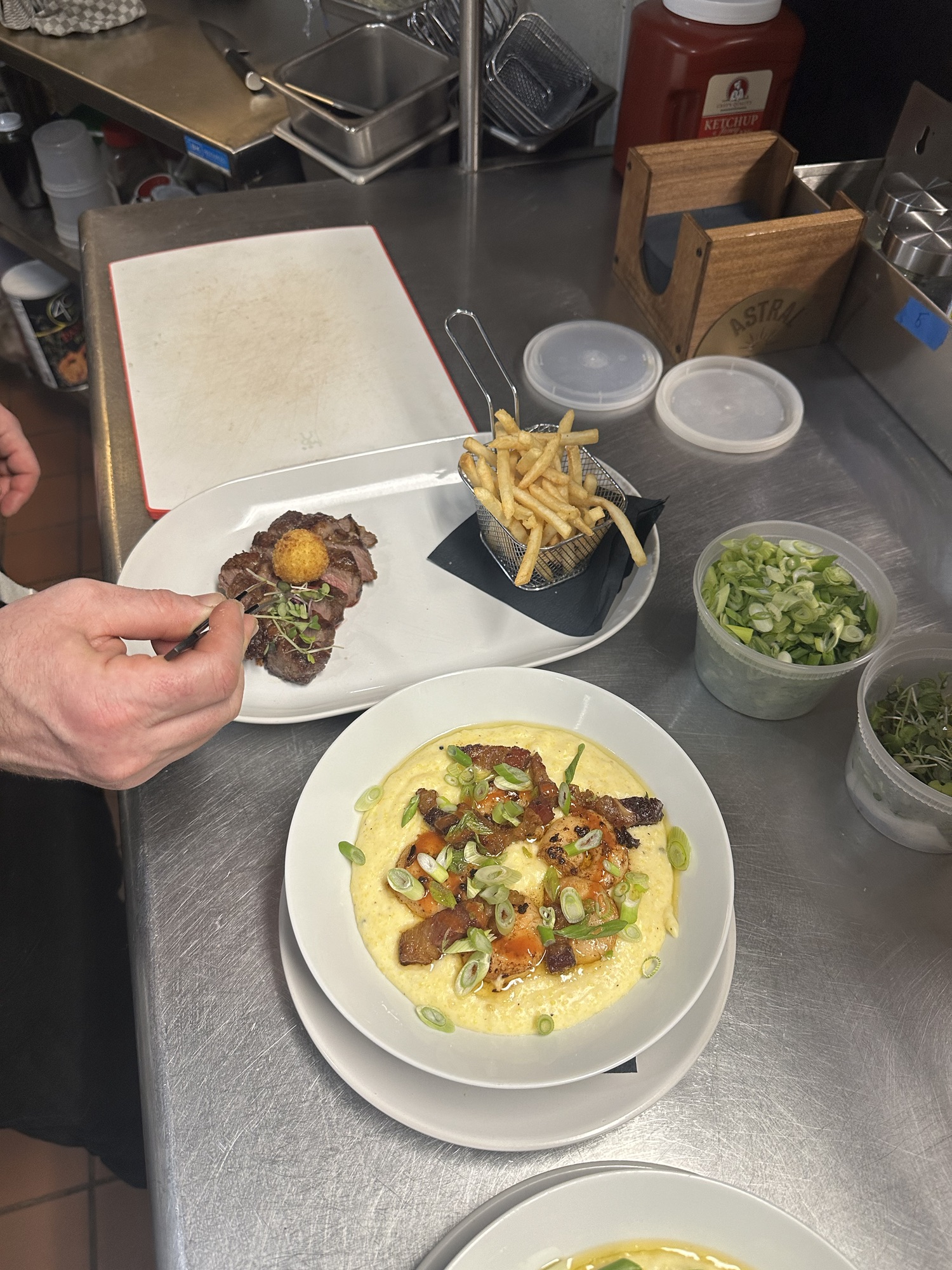 in 2018 while living at the cottage that bares the same name an idea was born over pizza, wine, and the five year plan….. I’ll spare the details but, five years (and a few weeks) later Little Riggs Opened July 2023. Little Riggs is what happens when someone says “you make great food, you should open a restaurant!” Well only a fool would listen to that kind of advice! But……… it got me thinking about “why” that was said. Well it took some time but I finally realized the common thread was the setting. Out of college in a minimal furnished apartment with mismatched silverware, mismatched friends a few chef tricks I brought the restaurants we couldn’t afford to our tables. I got older (maturity still escapes me) and I enjoyed the freedom of cooking unscripted from my employers menus. My menu testers were neighbors, BFF’s and a few clients looking for a private chef. Of course, I can’t forget the intimate dinners where the soft glow of a candle excluded everything but my love Missy, where the conversation turned from “should” open a restaurant to “can” open a restaurant. When I tried to articulate what these experiences should makea restaurant look like I came up with nothing….
